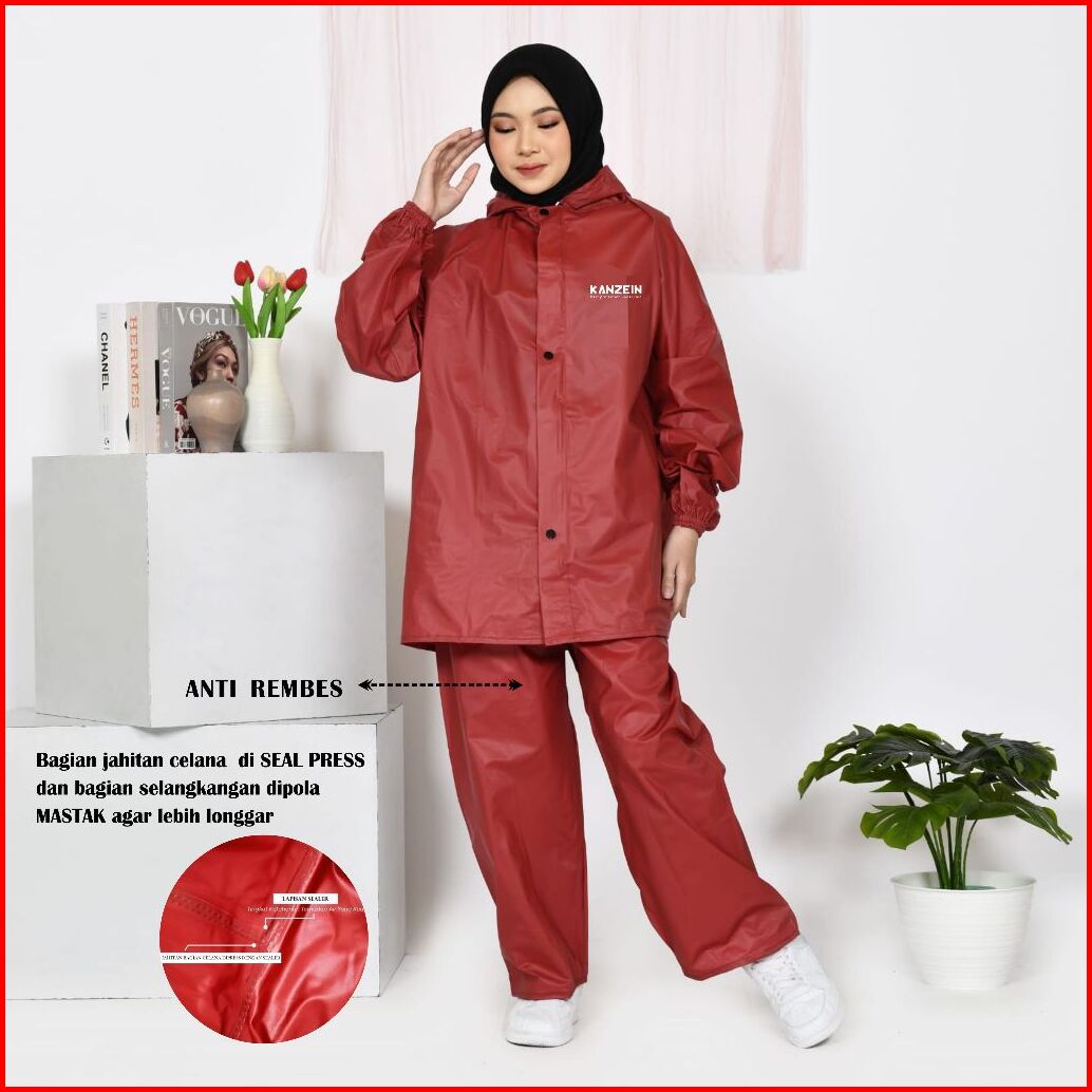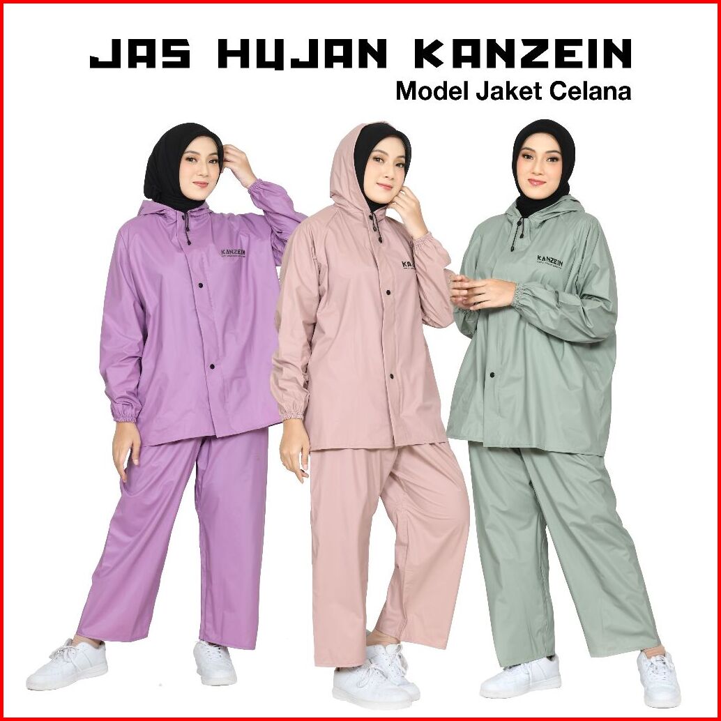 Jas Hujan Setelan Stelan Jaket Celana Atas Bawah Pria Wanita Cewe Cowo Merek Kanzein