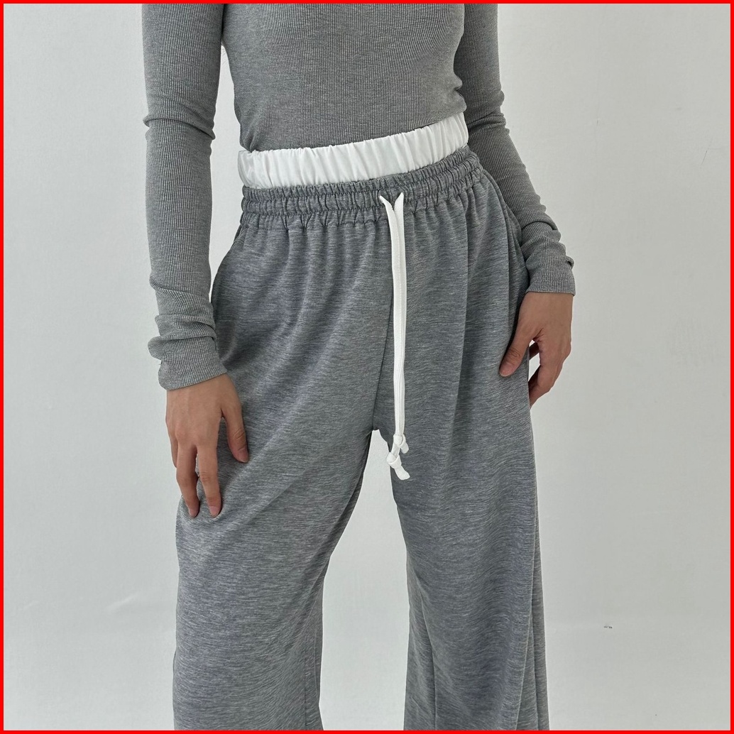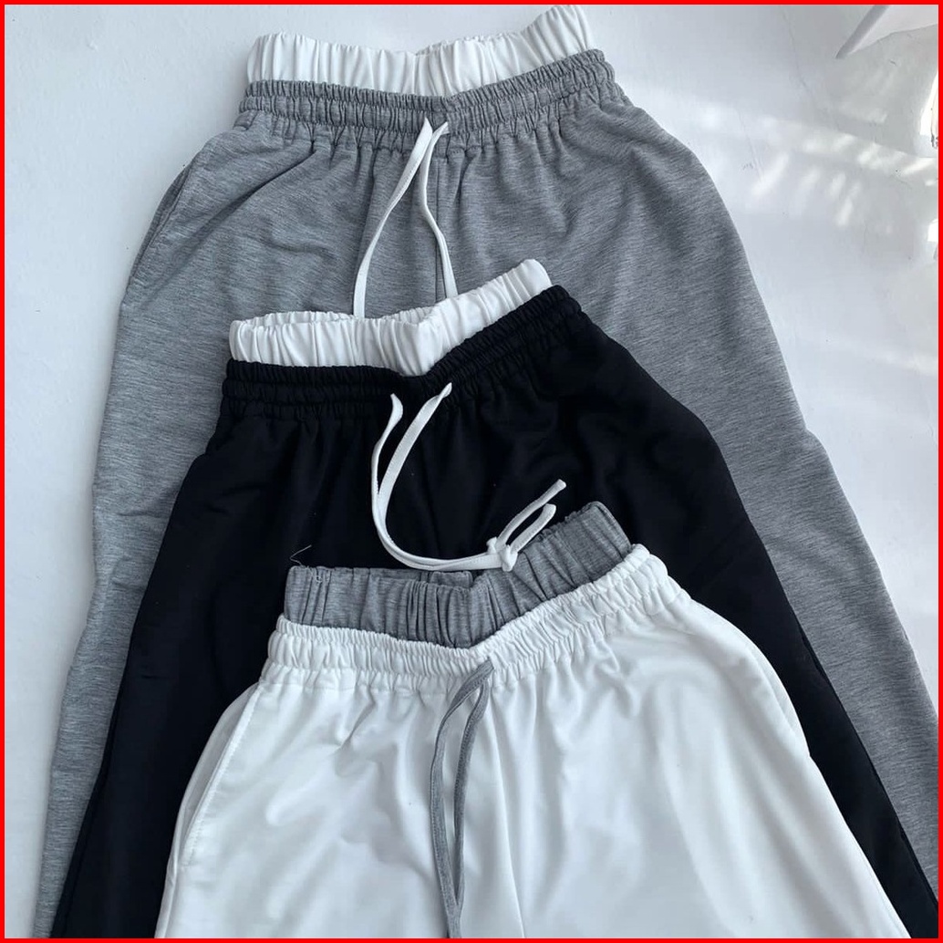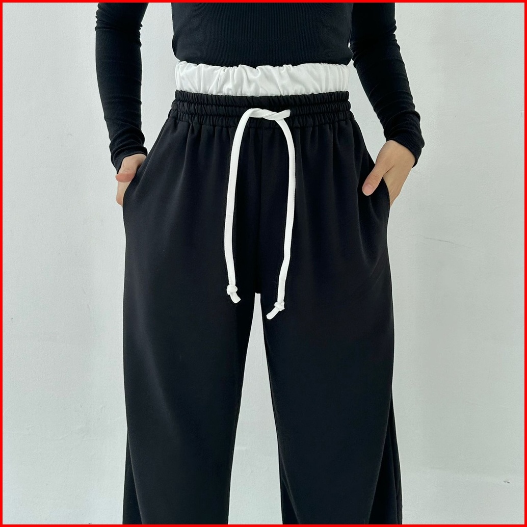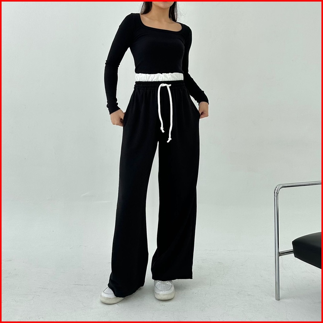 Saturn Pants Celana Highwaist Bahan Babyterry Karet Strip Korean Kulot Cullote Straight Pants Panjang Highwaisted