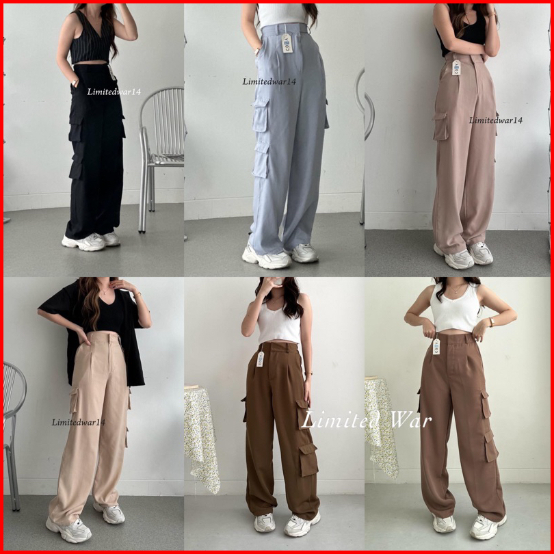 Limited - Bonnie Cargo Pants Highwaist Limited Sivali Factory Kargo Blackpink Best Seller Anti Kusut Celana Kargo Big Si