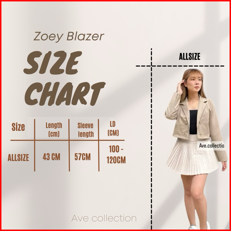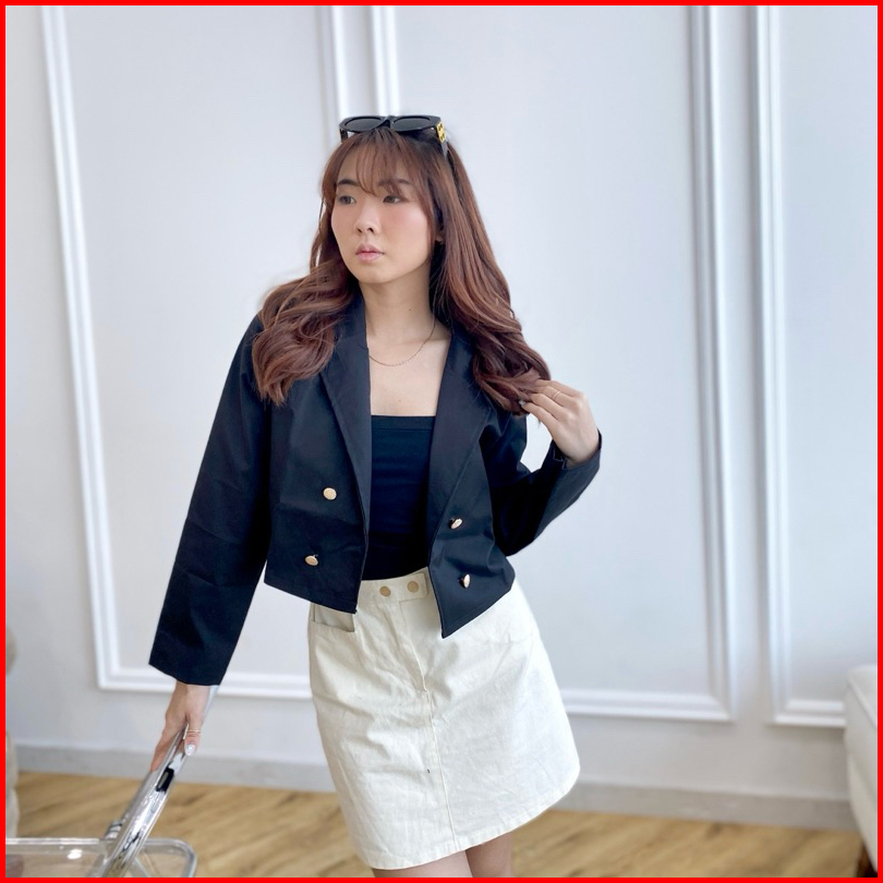 Ave 053a - Zoey Top Basic Crop Blazer Atasan Blazer Crop Wanita Lengan Panjang Catoon Twill