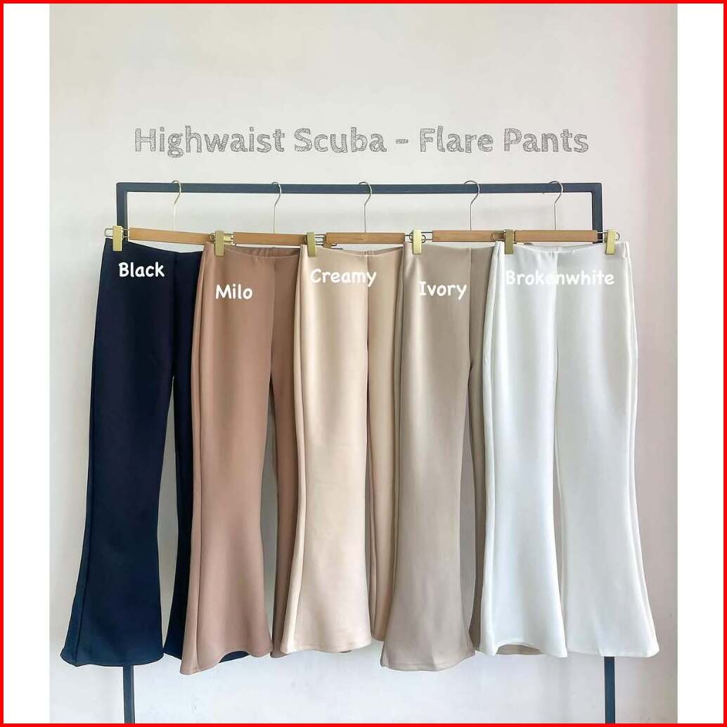 Clarisse.id - Flare Pants Cutbray Celana Kulot Highwaist Semi Cutbray Wanita Panjang- Celana Kulot Wanita - Celana Kerja