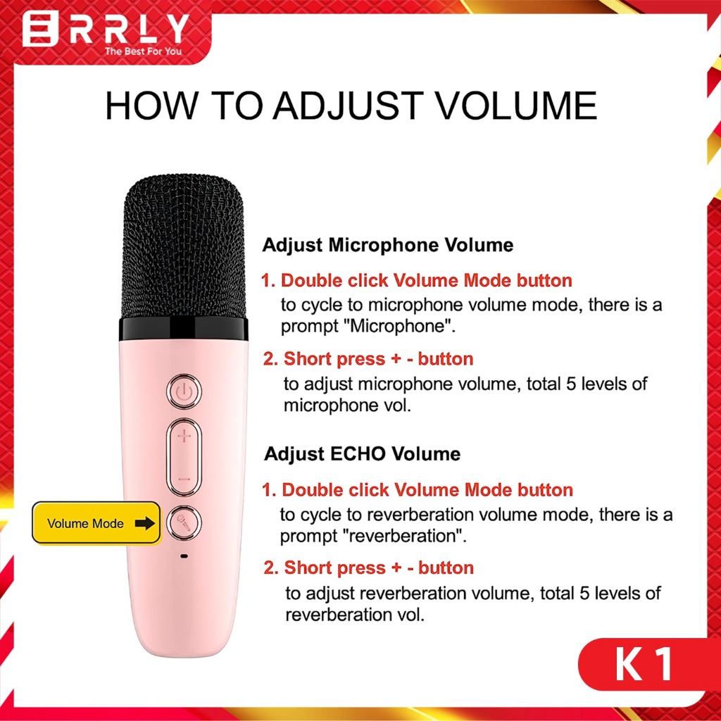 Speaker Bluetooth Wireless Karaoke ERRLY K1 Set MINI S Microphone 2Mic 1mic All In One