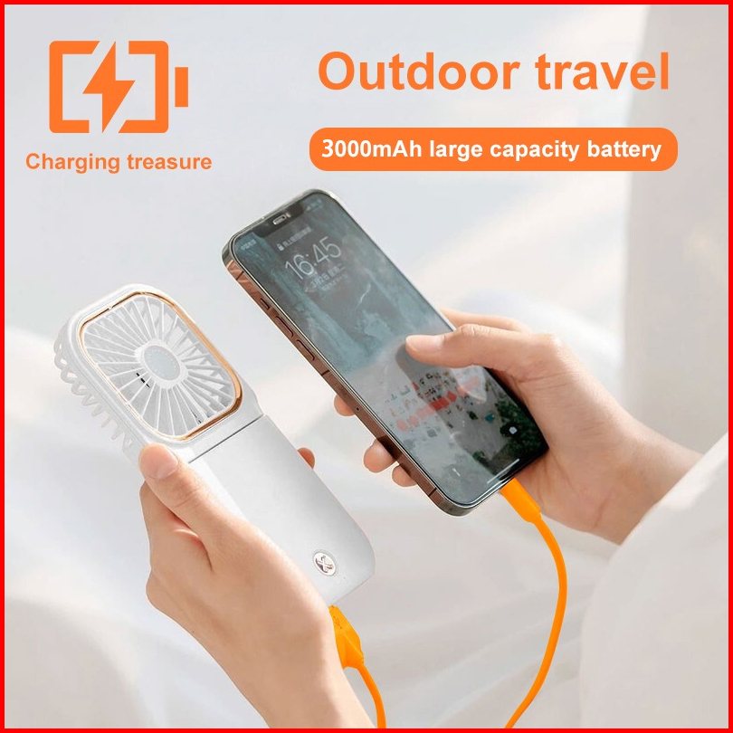 Kipas Angin Portable Mini Usb Lipat Dudukan Ponsel Dan Powerbank 3000mah Baterai Tahan Lama Cocok Untuk Kantor Sekolah O