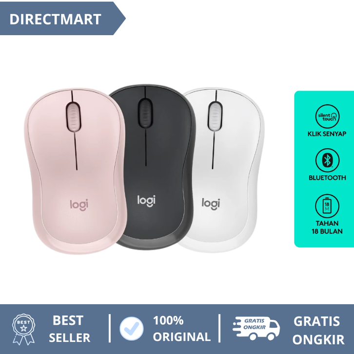 MOUSE LOGITECH WIRELESS BLUETHOOTH LAPTOP PC PAD M241 SILENT RINGKAAS PORTABLE UNTUK WINDOWS MAC OS