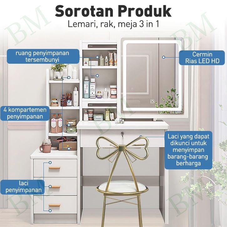 Meja Rias Lampu LED Meja Rias Dengan Kursi Meja Rias Kaca Sliding Minimalis