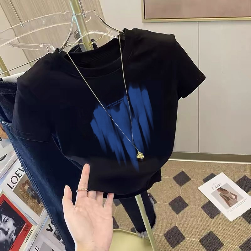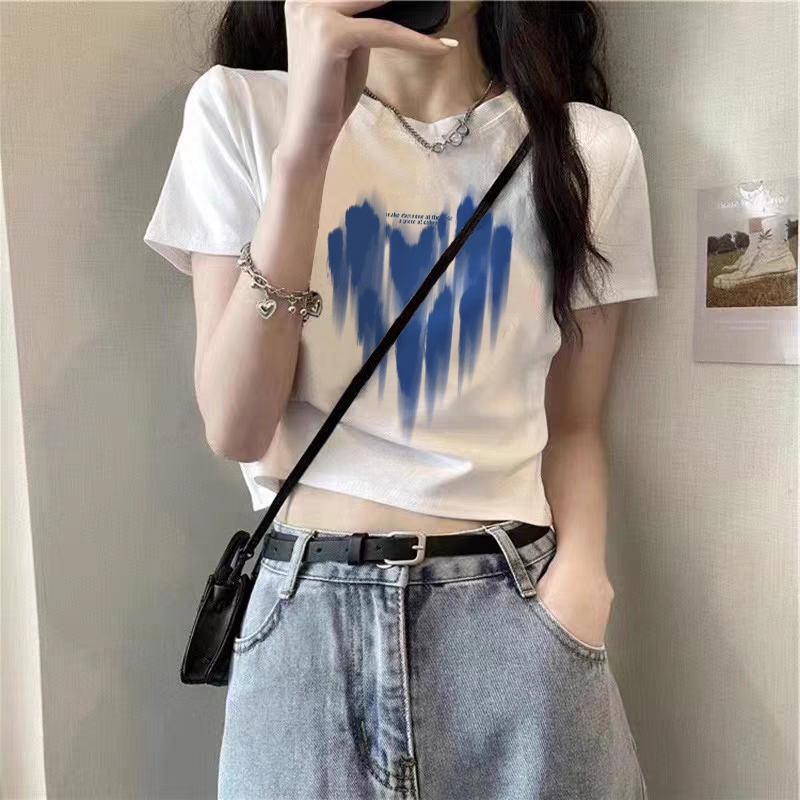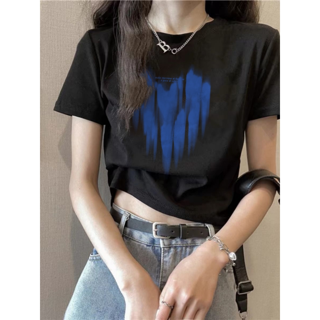 XiaozhaiNv Baju Pendek Wanita Crop Top | Lengan Pendek Wanita Kaos Crop Top | Atasan Wanita Kekinian Korean Style | crop