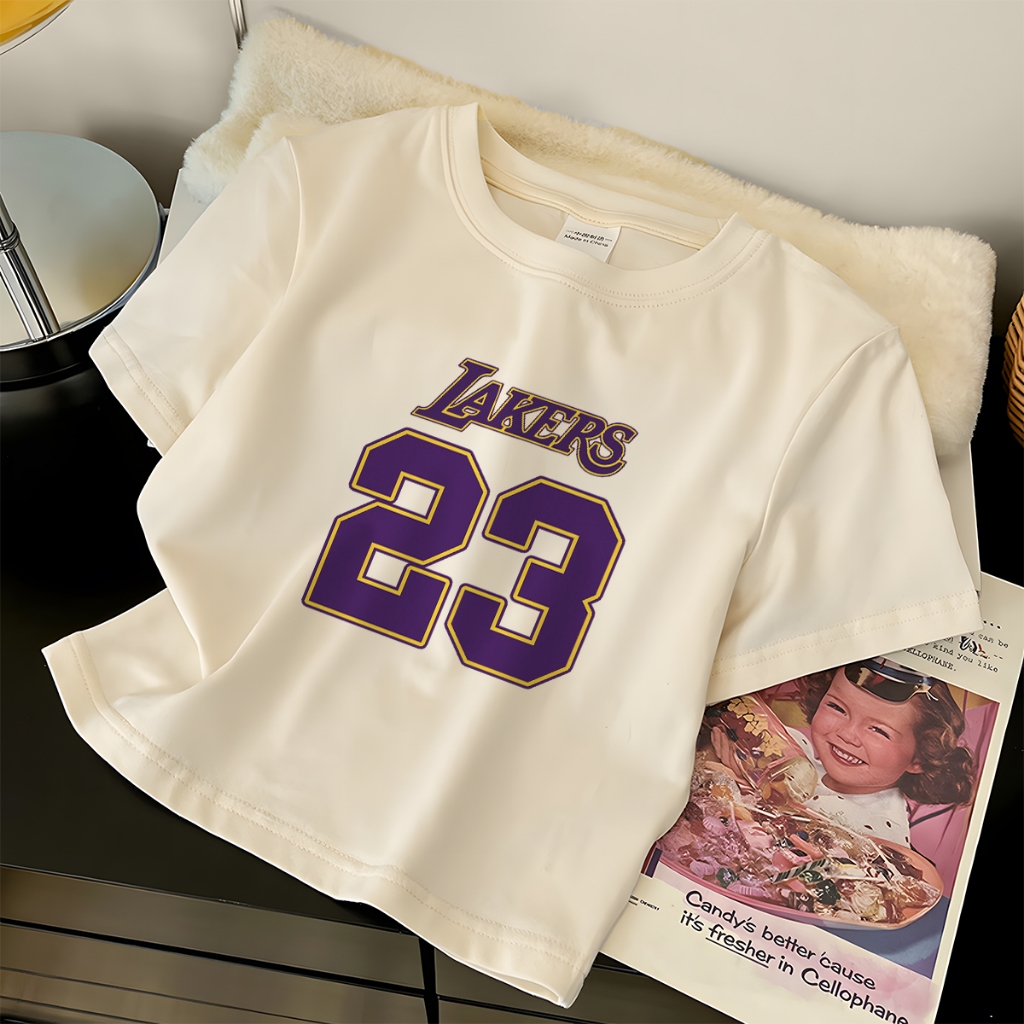 JW T-Shirt Crop Top Lengan Pendek Kaos Wanita Crop Top Korea LAKERS 23 Print Kaos Crop Wanita Kekinian Baju Crop Top Wan