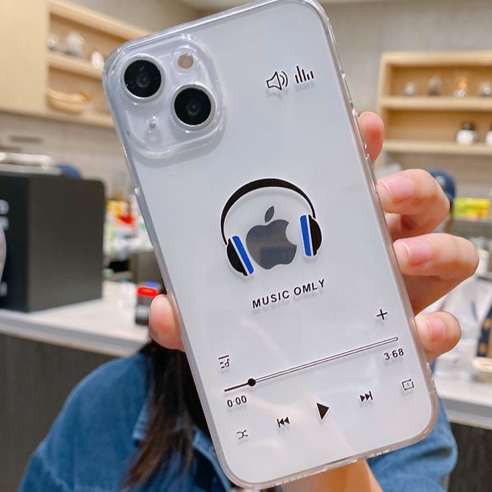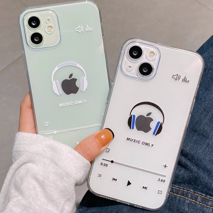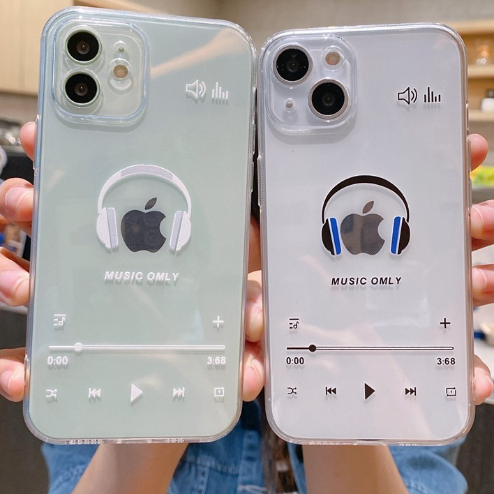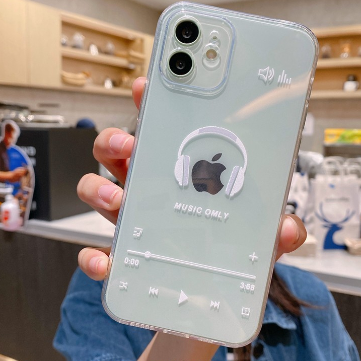 Softcase TPU Bening Bergambar Motif Headset Musik Only for iPhone 11 12 13 14 15 PRO MAX X XS XSMAX XR 7/8 PLUS MINI