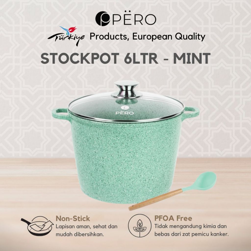 Pero Stock Pot Panci Gentong 24cm with Glass Lid Panci Granite Anti Lengket Panci Granite Besar Kapasitas 6 Liter Anti Lengket