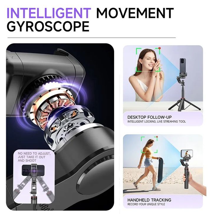 GROTIC Tri Gimbal Stabilizer C22 With AI Face Tracking Phone Selfie Remote Control 130cm