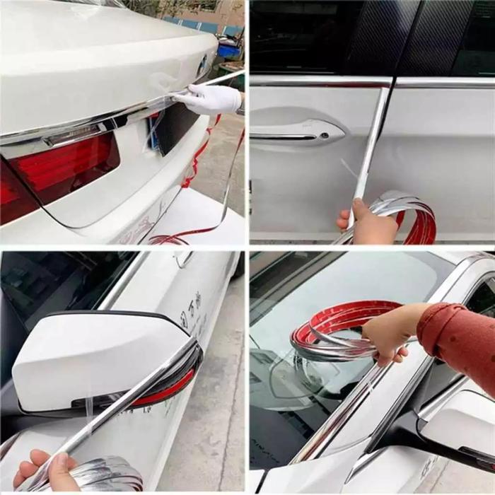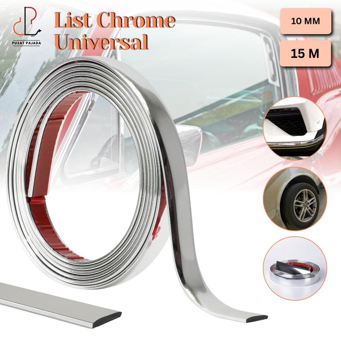 List Chrome Body Moulding Trim 10MM Kaca Bumper Strip 15 Meter 10 MM Jendela Pintu Mobil Silver - 10mm