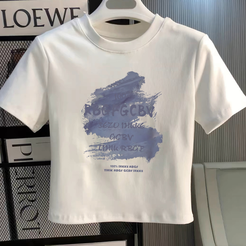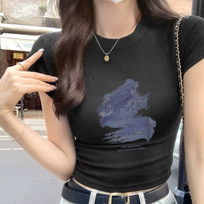 006-087 Baju Pendek Wanita Crop Top Ketat Putih Polos Wanita Korea Print Street Style Baju Basic Crop Top