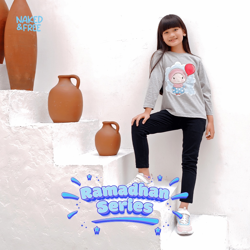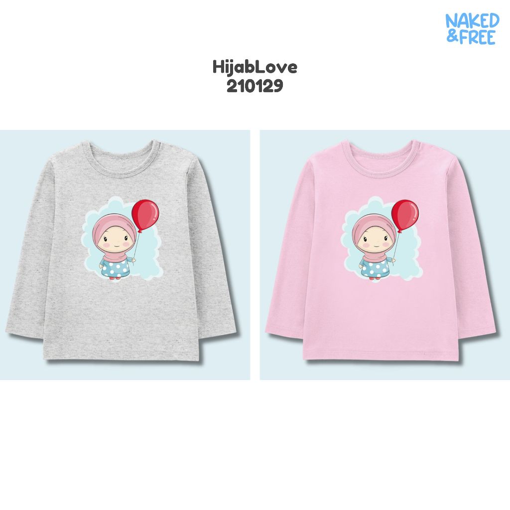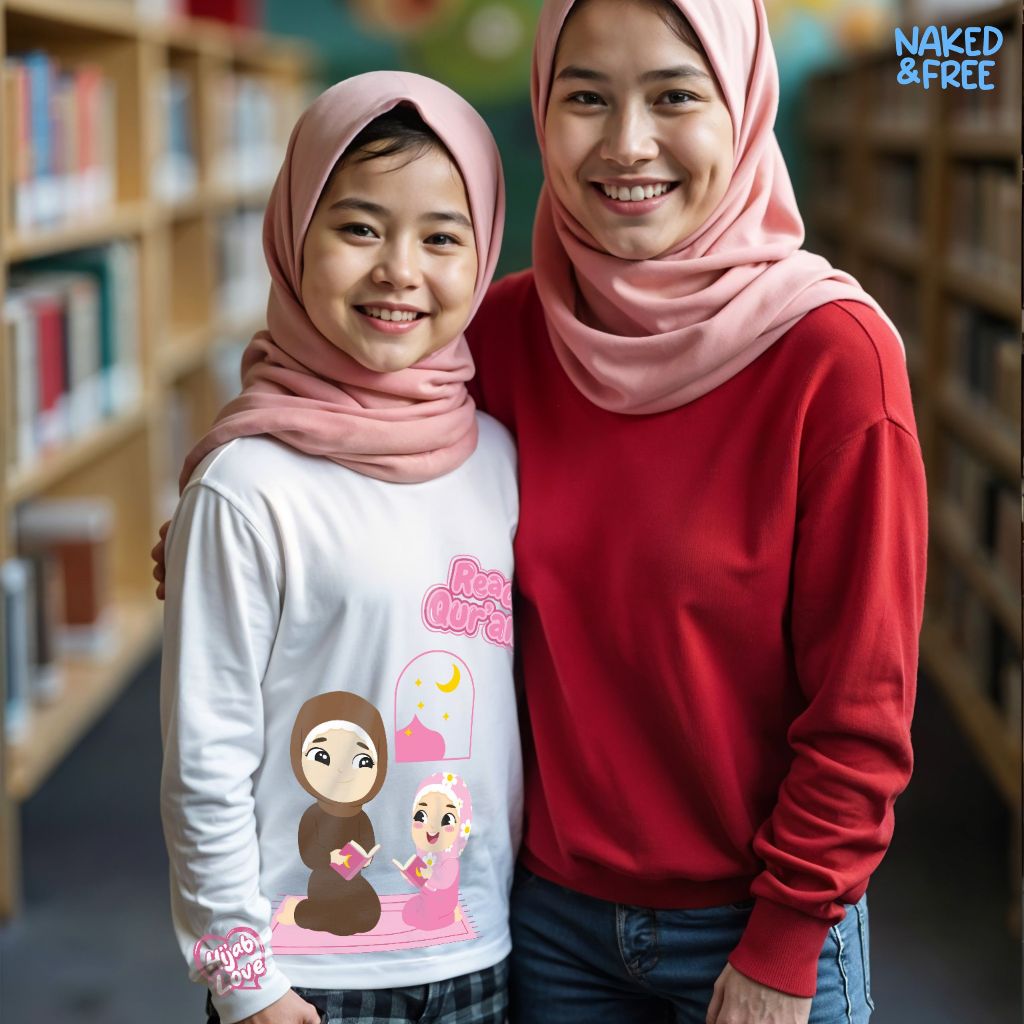 NAKED & FREE BAJU KAOS LENGAN PANJANG ANAK PEREMPUAN HIJAB LOVE SERIES ZARRA AYO MENGAJI BAHAN KATUN