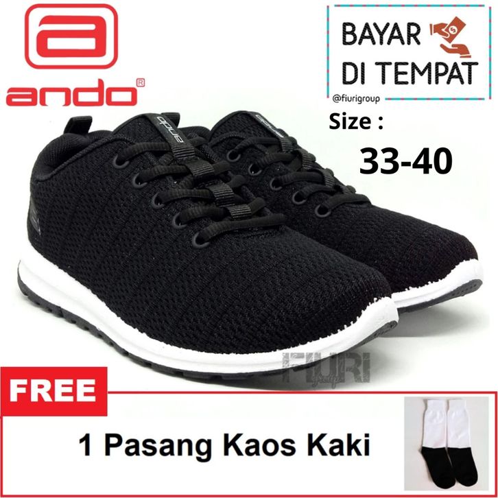 FIURI - ANDO ORIGINAL - REBECCA 33-40 HITAM PUTIH PINK - SEPATU SNEAKERS SPORT KANVAS SOL KARET ANAK PEREMPUAN - SEPATU
