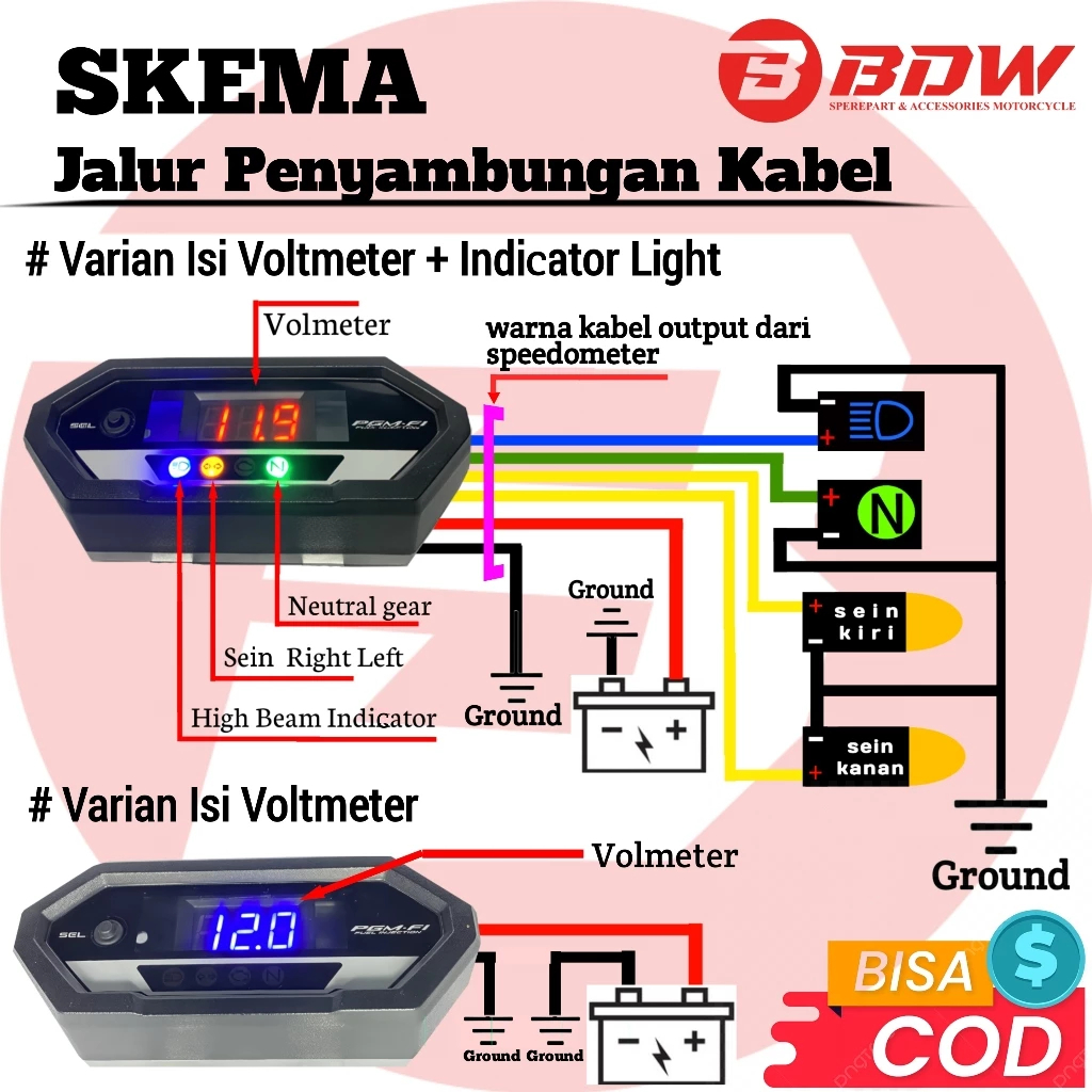 SPEEDOMETER DIGITAL CUSTOM 12 VOLT COVER BEAT STREET, CRF, VERZA, KLX ISI VOLTMETER DAN INDIKATOR (SEIN, NETRAL, LOWBEAM