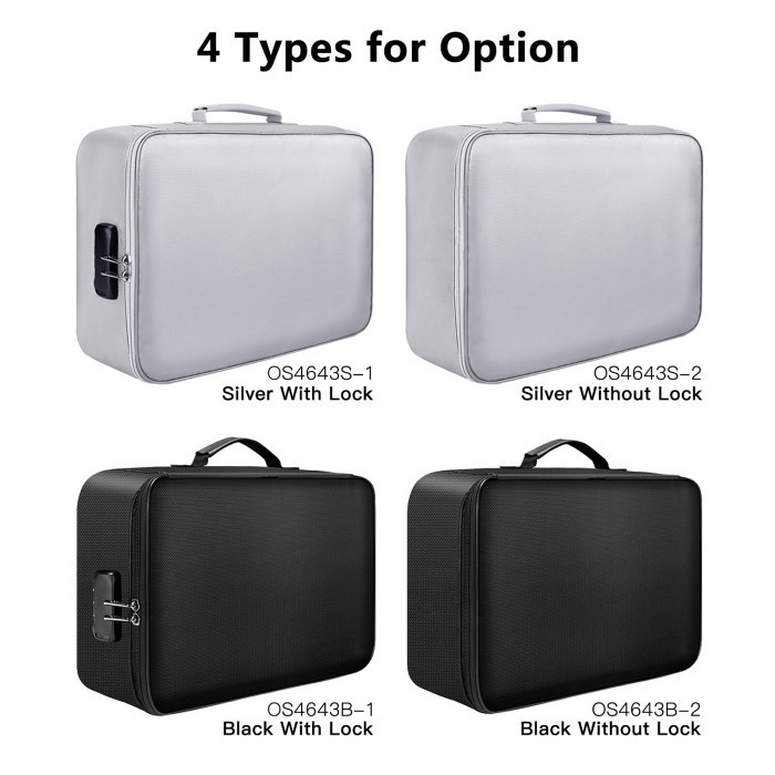 Tas Dokumen anti Api dengan Kunci Ritsleting Tas Anti Api Air - Black Lock
