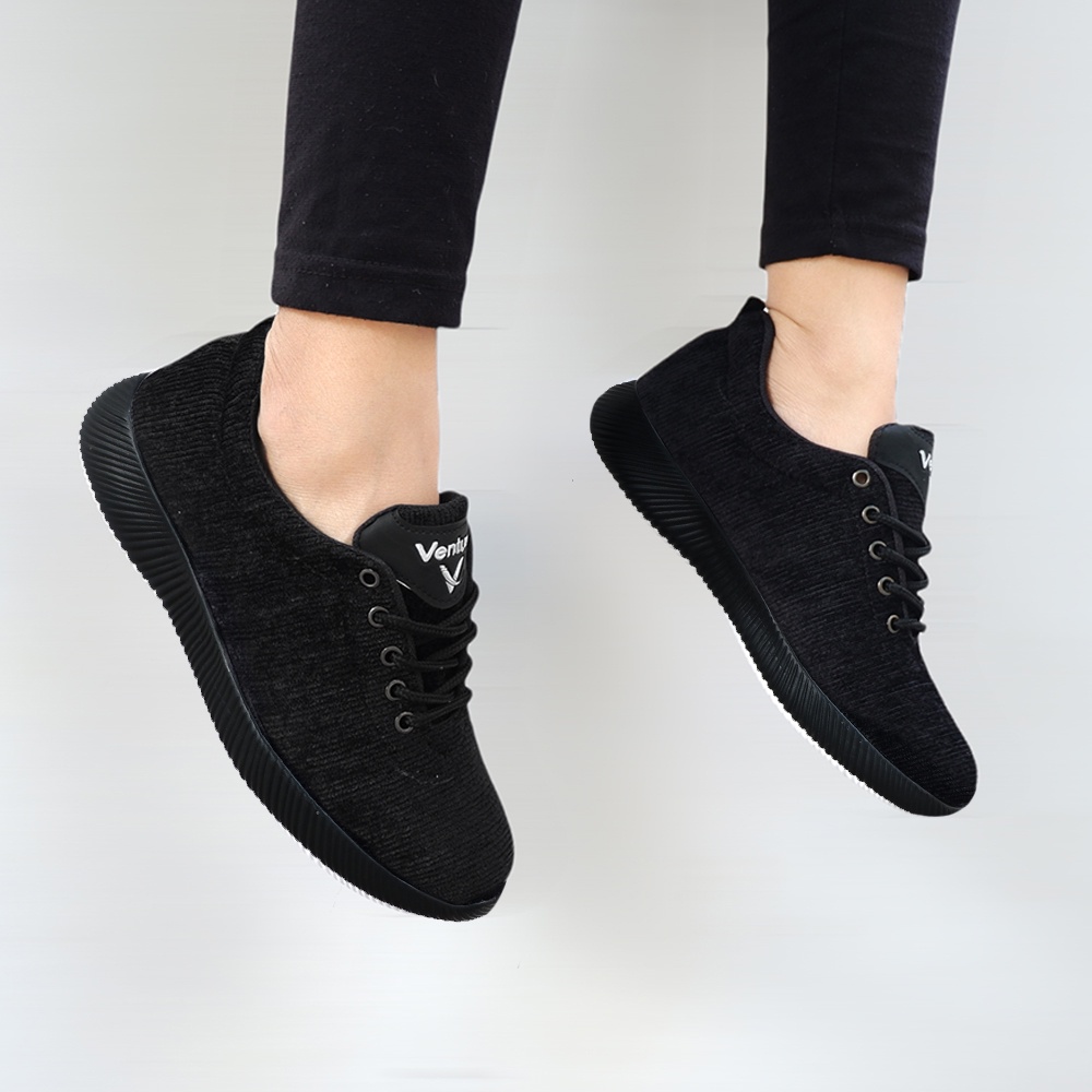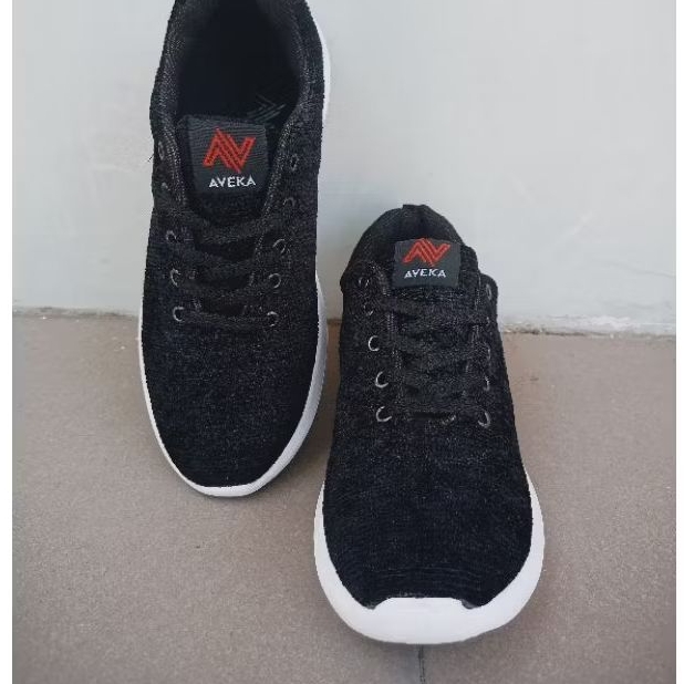 AVEKA SEPATU SEKOLAH HITAM FULL SNEAKERS PRIA WANITA