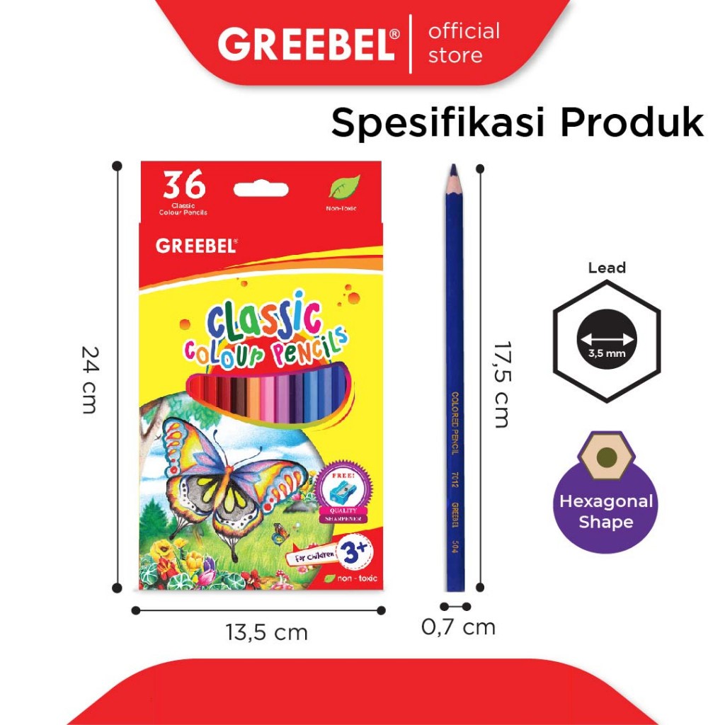 GREEBEL Pensil Warna 12/24/36 Warna Classic Color Pencils / Colored Pencil / Warna Lebih Nyata