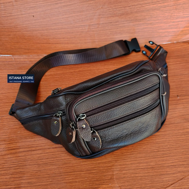 Terbaru Tas Waistbag Kulit Asli. Tas Pria Selempang Full Kulit Tas Viral Wb