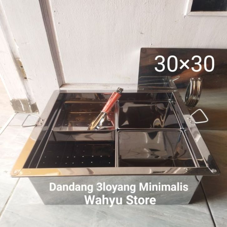 Dandang Odeng Sekat 3 Loyang Panci Pangsit Wonton Minimalis Ukuran 30cmx30cmx20cm