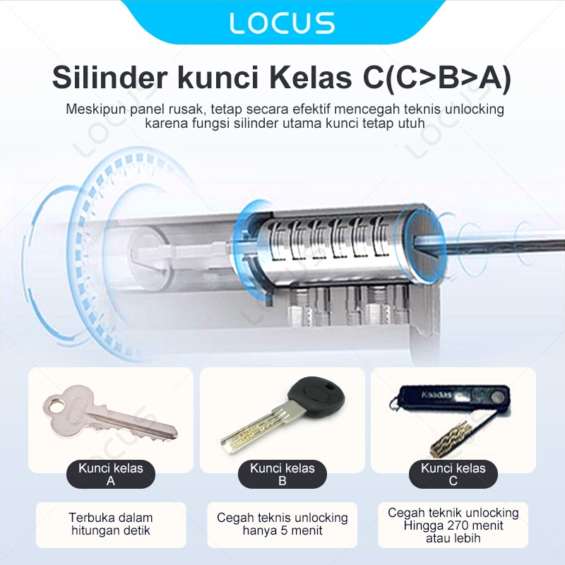 Locus A3 Smart Door Lock dengan Sidik Jari, Kunci Pintu Digital Fingerprint/Password/Access Card. Semikonduktor 3D dan A