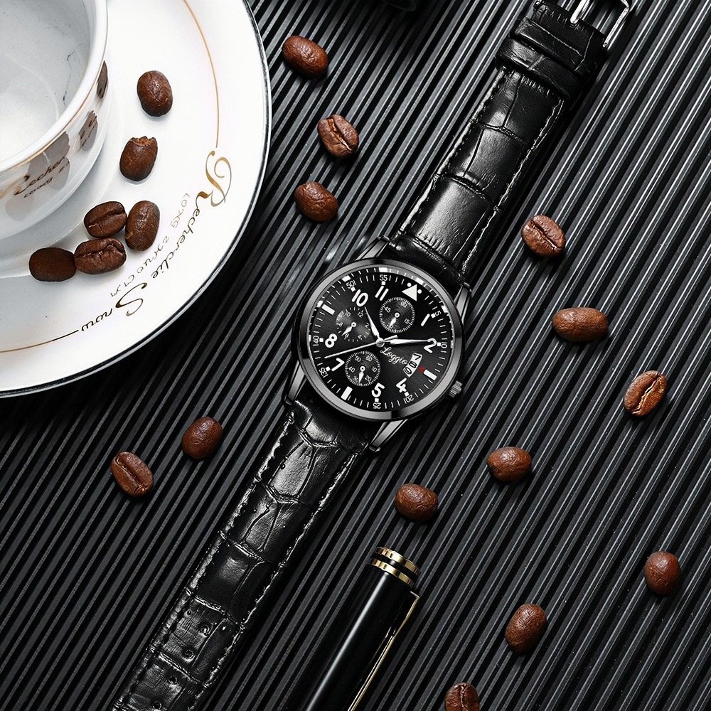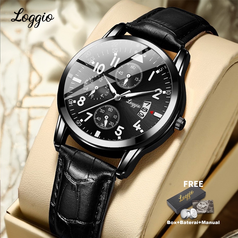 Loggio Jam Tangan Pria Lampu Malam Anti Air Kuarsa Tali Kulit Jam Tangan Cowok