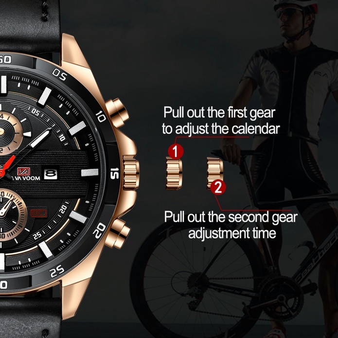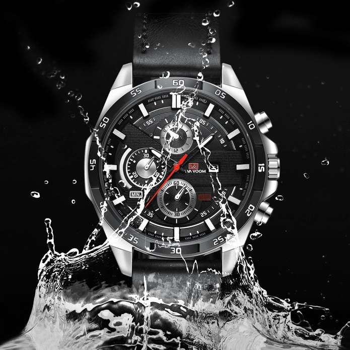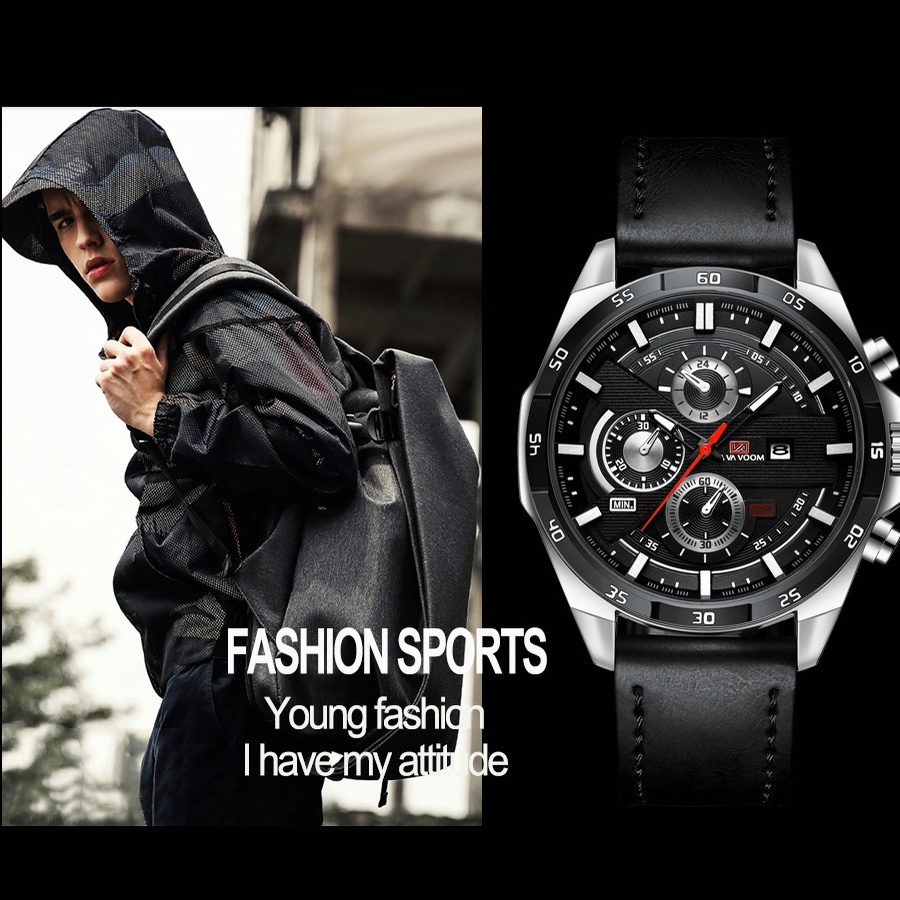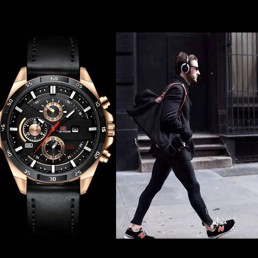 VAVA VOOM Jam Tangan Pria Kronograf TANGAN COWOK Quartz Analog Kulit Mursh Gift COWO 216