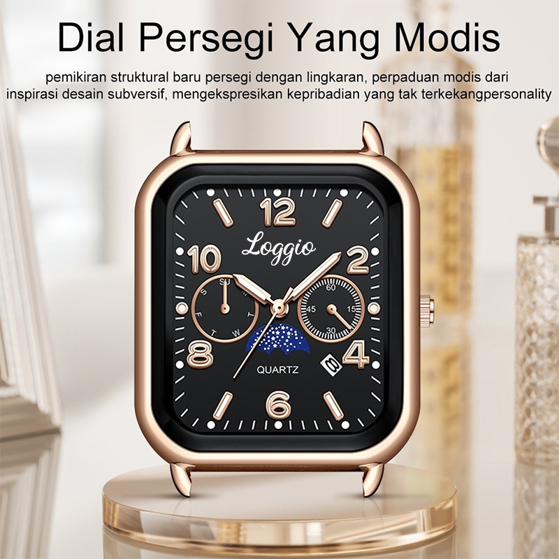 Loggio Jam Tangan Pria Wanita Sport Chrono Korea Luminous Quartz Silikon Rubber Analog Watch