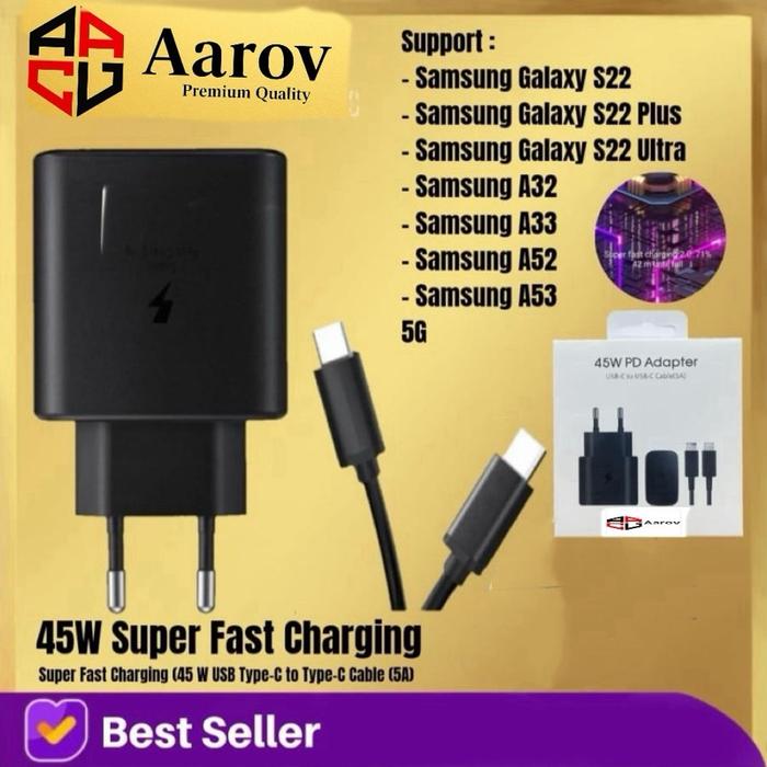ADAPTOR CHARGER 45W SAMSUNG S20 S22 PLUS ULTRA A33 A53 USB C 45watt 5G Aarov Super Fast Charging 2.0