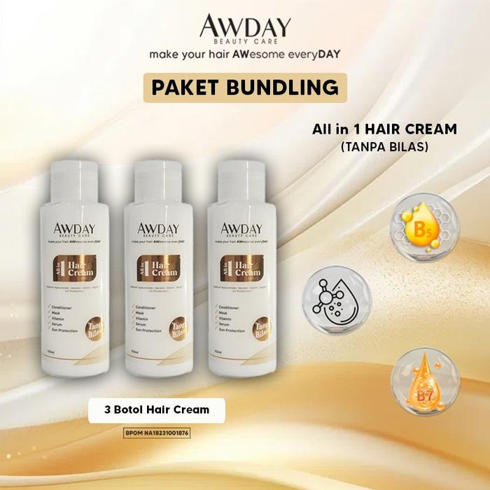 PAKET 3PCS HAIRCREAM AWDAY TANPA BILAS Conditioner Shampoo