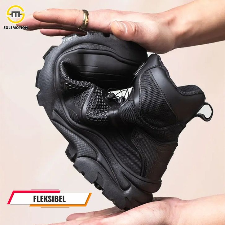 sepatu gunung Sepatu Safety Pria Ujung Besi Tali Putar Boots Kerja Proyek Tactical Outdoor Solemotion -9ravton