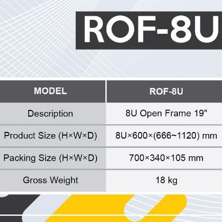 Kenika Open Rack 8U Open Frame 19" (H8U x W600 xD (666-1120) mm) adjustable ROF-8U