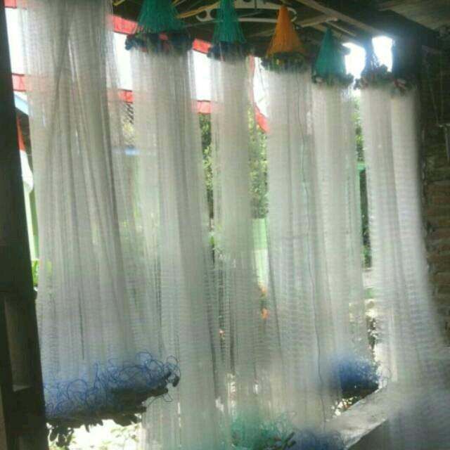 Jaring Ikan Jaring Ikan Siap Pakai Tinggi 1,5 meter Panjang 20 - 25 meter Senar 0,2 lubbang 2 1/4 inci 3 jari