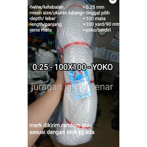 Jaring Ikan JARING IKAN / JARING SENAR 025 100x100 YOKO UKURAN lubbang TINGGAL PILIH