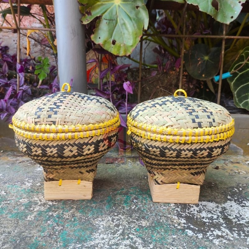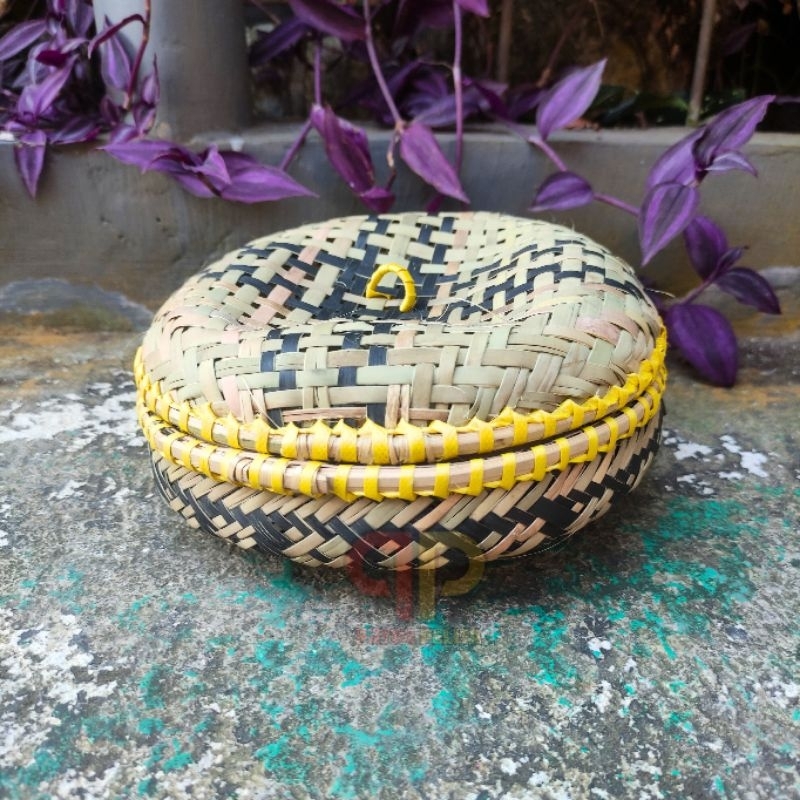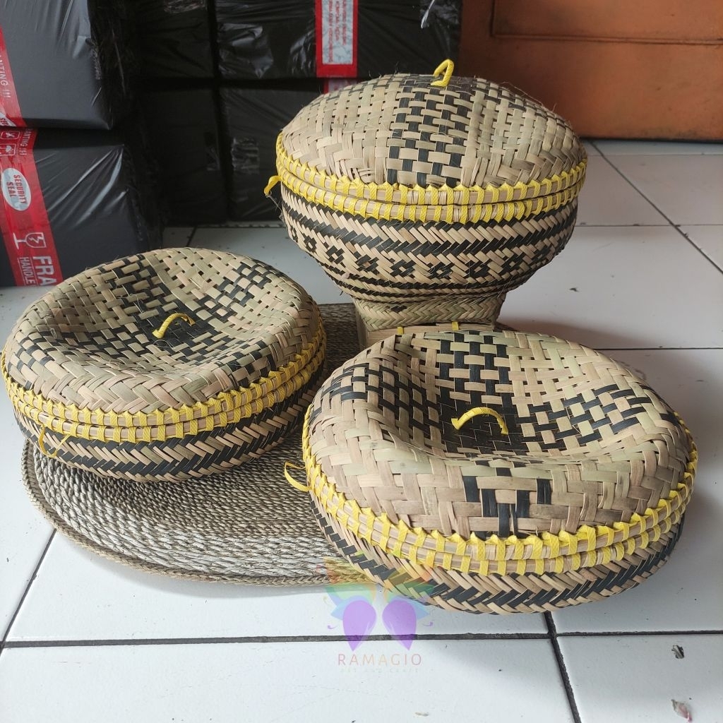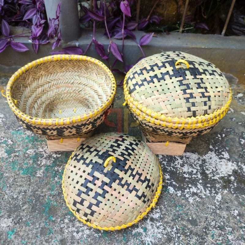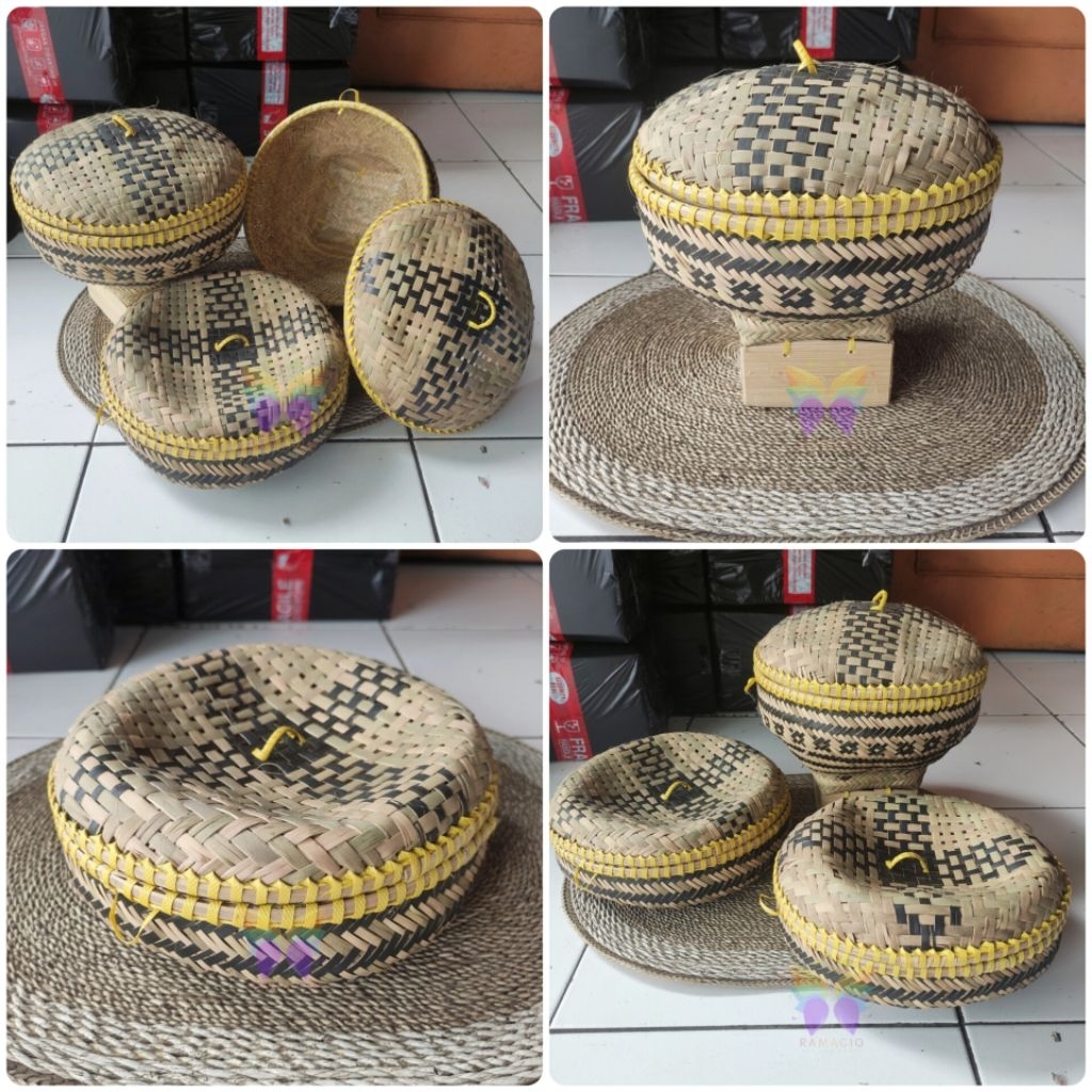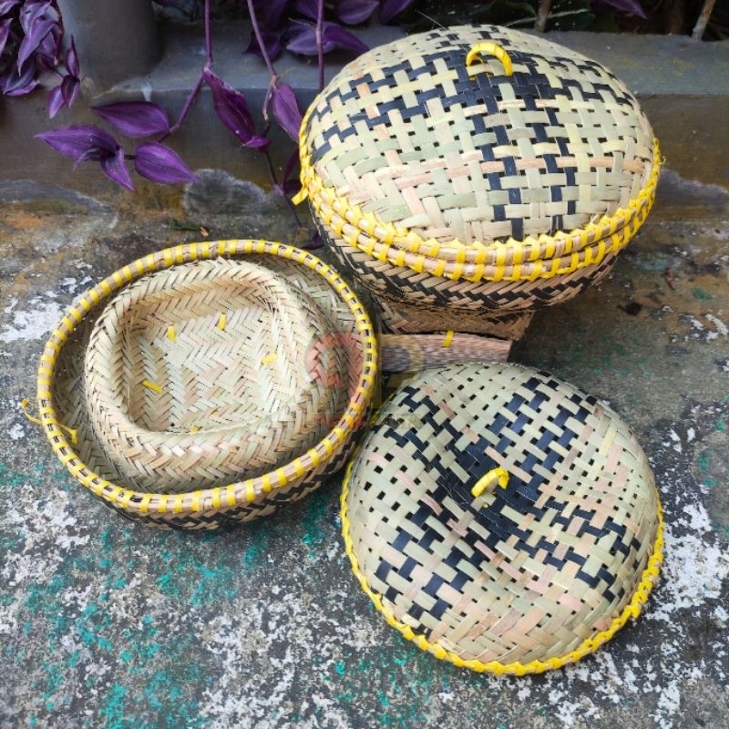 BAKUL BAMBU BOBOKO ELASTIS PLUS TUTUP UKURAN MINI CUKUP 24 ORANG MOTIF ANYAM