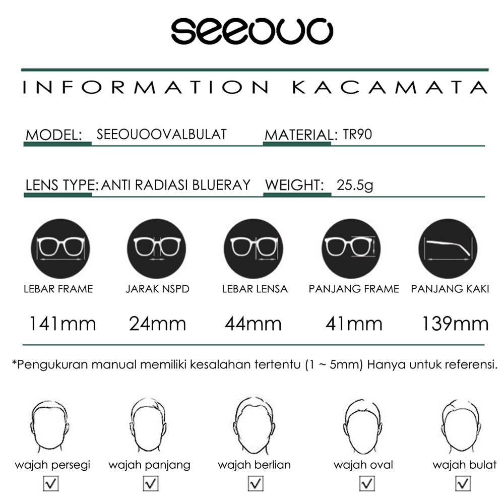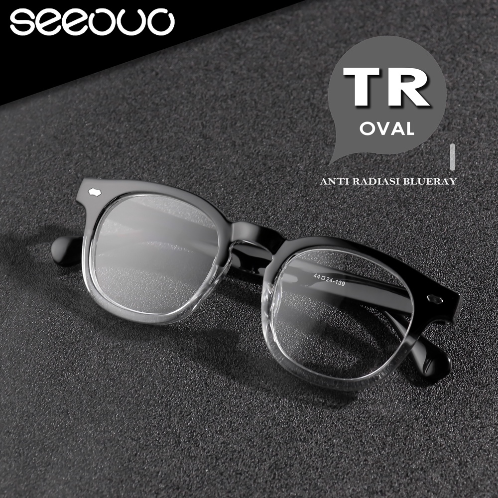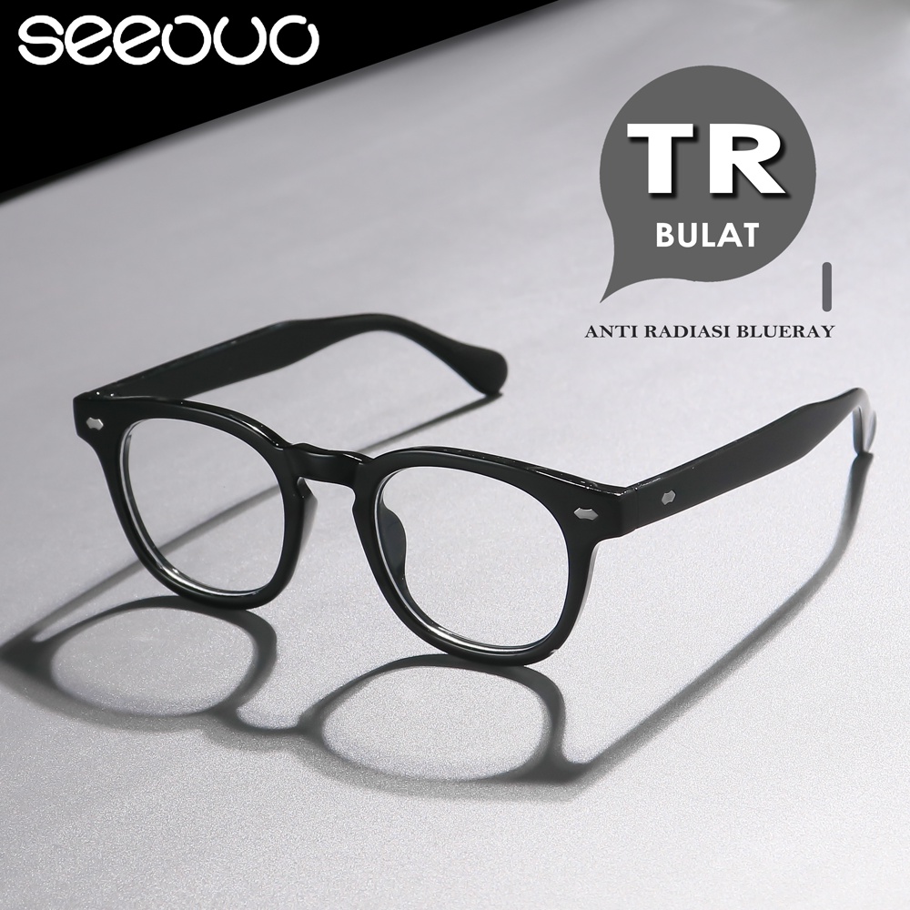 Seeouo Kacamata Fashionable Korea Kekinian Terbaru Pria Wanita Antiradiasi Blueray Bisa Minus Model Oval Bulat Bahan TR9