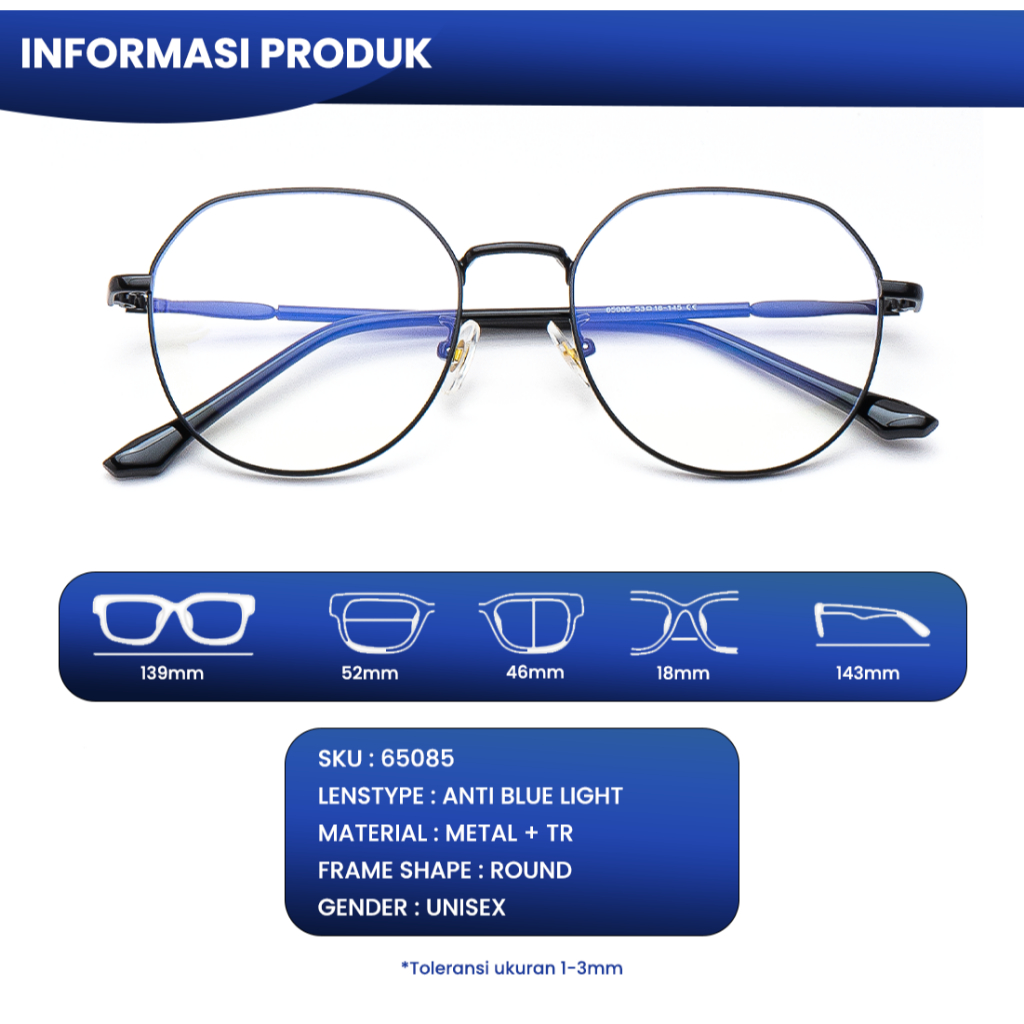 IOOI Eyewear - Kacamata Frame Bulat Classy Lensa Bisa Minus Photocromic Blueray Pria Wanita 65085
