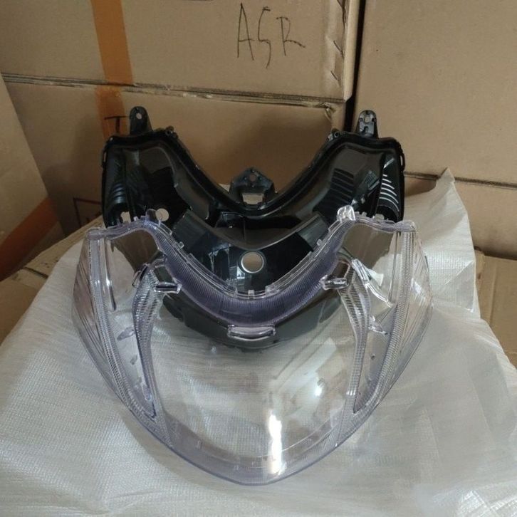 REFLEKTOR PLUS MIKA KACA LAMPU DEPAN YAMAHA MIO M3 MIO Z HITAM SMOKE BAHAN CUSTOUM BILEED BISA DIMPASANG BILED 4.5" INC