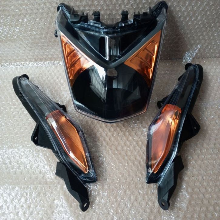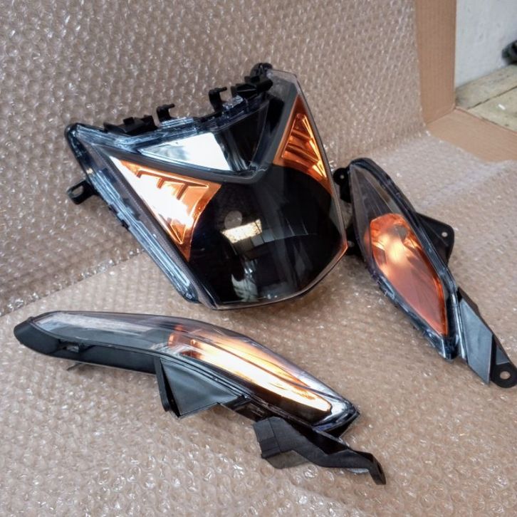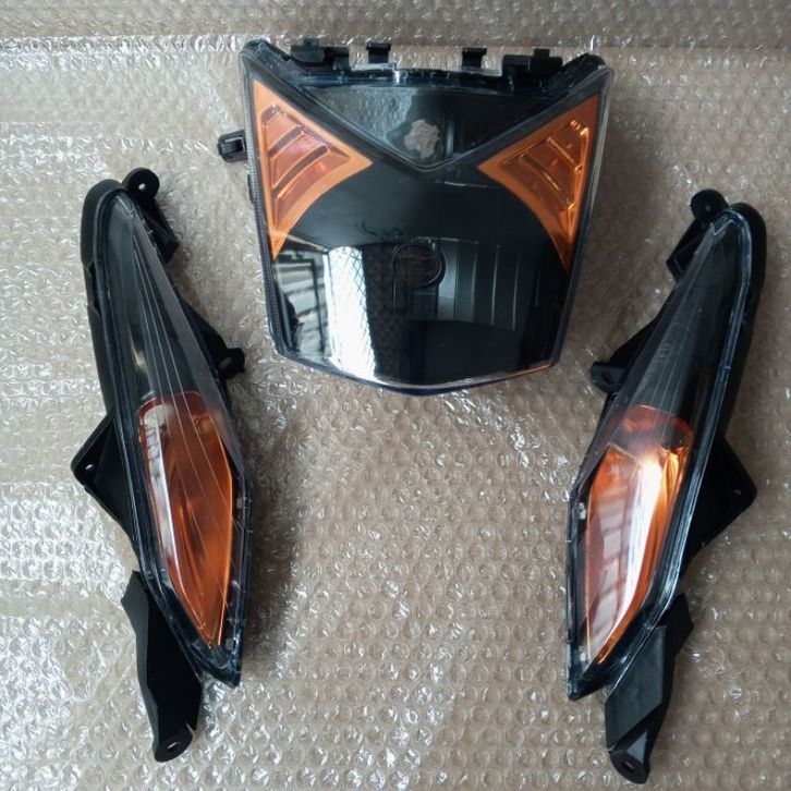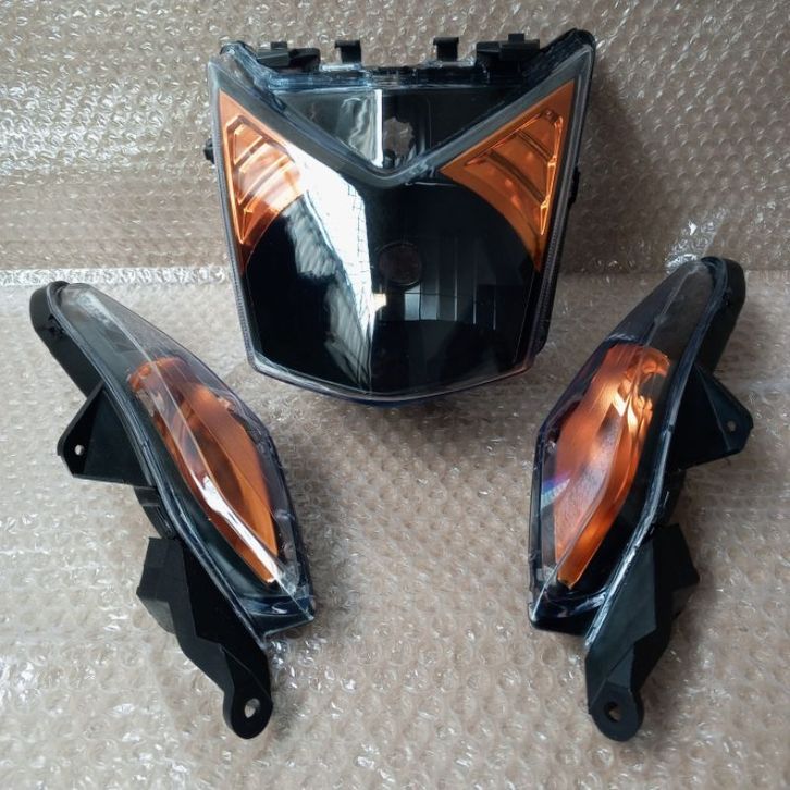 Paket Reflektor Lampu Depan Plus Mika Sen Sein Riting Depan Beat fi Beat fi Pgm 2013 2014 2015 Custom Hitam Orange