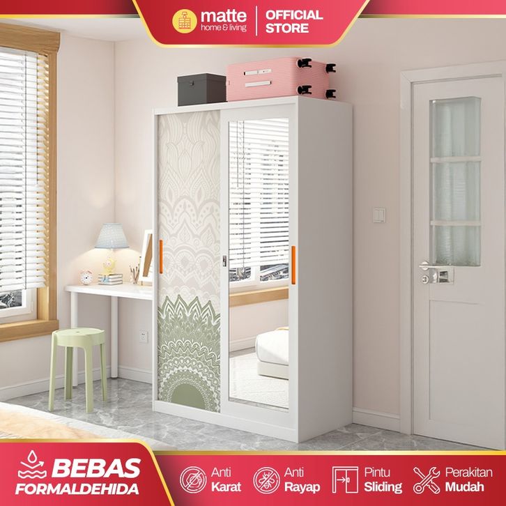 Lemari Pakaian Lemari Besi Sliding 2 Pintu Lemari Pakaian Minimalis Lemari Besi Kaca & Motif
