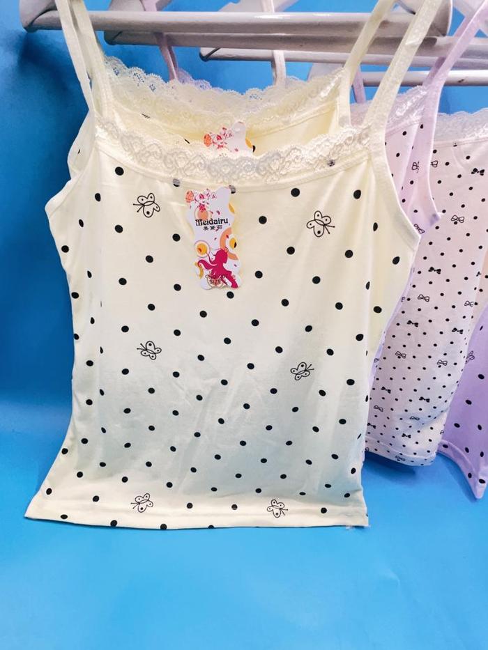 Satu Lusin Kaos Dalam Anak Singlet PoLka- Harian Berwarna Size MLXL #111 Fashion perempuan - M 4 PCS