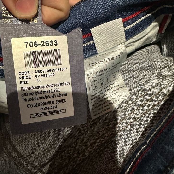 Celana Panjang Jeans Pria Oxygen Denim Original 706 Slim Fit Stretch 706-2633 size 31