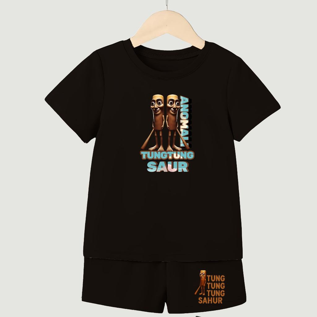 ARFIQRI KAOS SETELAN POLOS ANAK LAKI-LAKI MOTIF TUNGTUNG SAUR UMUR 4-14 TAHUN BAHAN 30S
