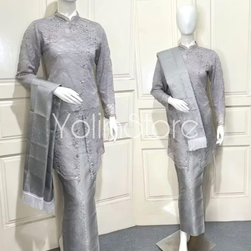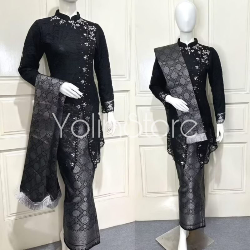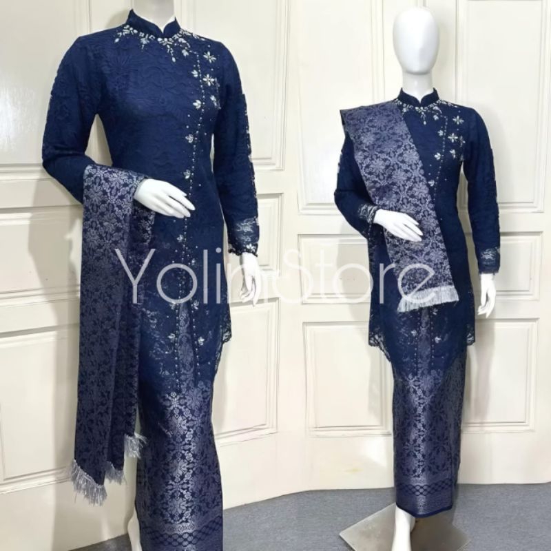 Best Seller Stelan Kebaya Brokat Payet ern el Terbaru / Kebaya Janggan set songket selendang / Kebaya Pesta / Kebaya Bus