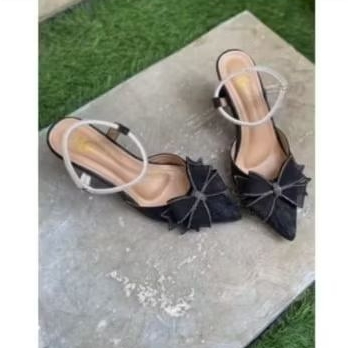 Sendal Sepatu Wanita Pesta Premium Runcing Pita Aksesoris Cantik Simpel Santai Formal Wisuda R11