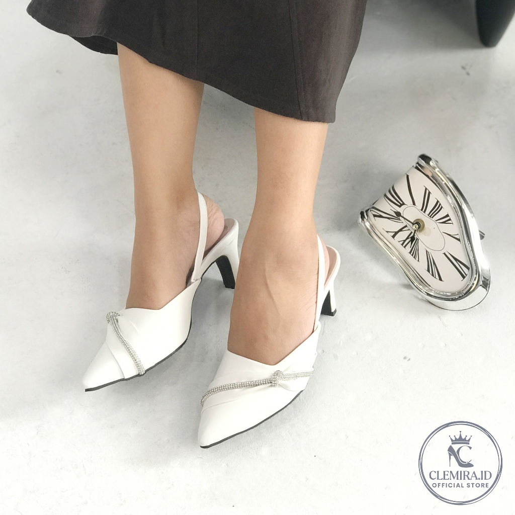 PROMO MURAH FREE DM04 !! Clemira Sandal Slop wanita Kekinian Slingback Hak 5 cm dengan Crystal Kitten nyaman & Empuk