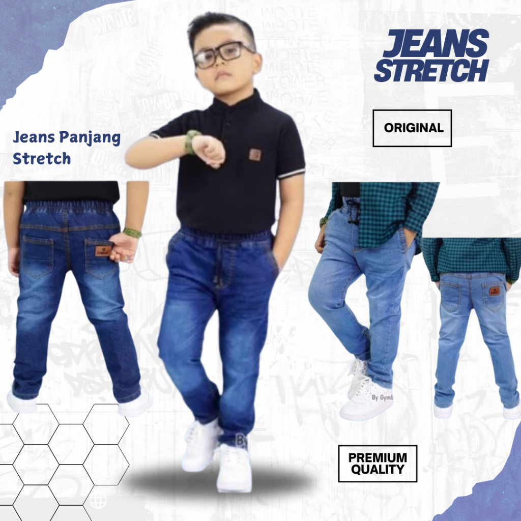 Celana Jeans Anak 2-10 tahun - Celana Anak Laki-laki Jeans Panjang Wisker Stretch - Gembo Kids