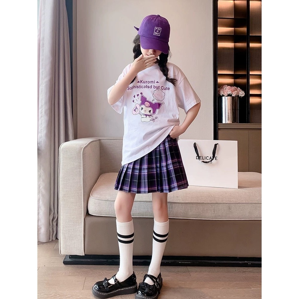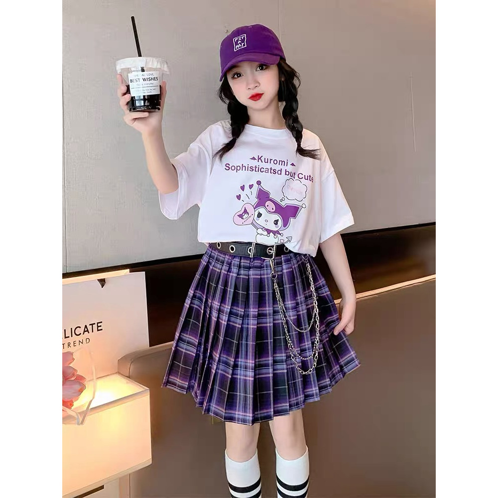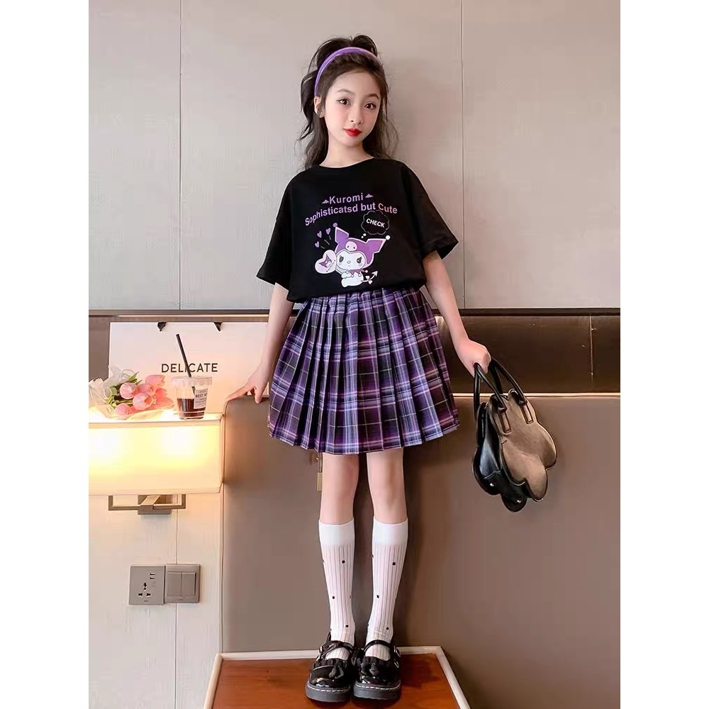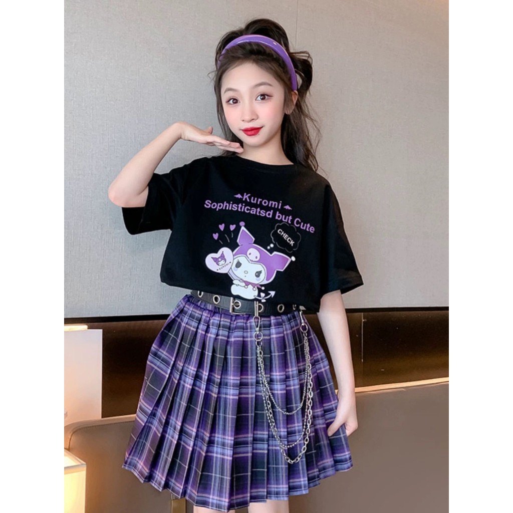 SETELAN ROK ANAK PEREMPUAN STYLE KOREA KUROMI T-SHIRT+PLEATED SKIRT 2 WARNA HITAM / PUTIH (TIDAK ADA IKAT PINGGANG)