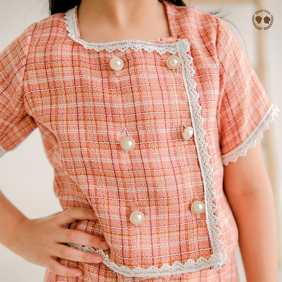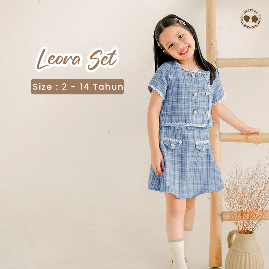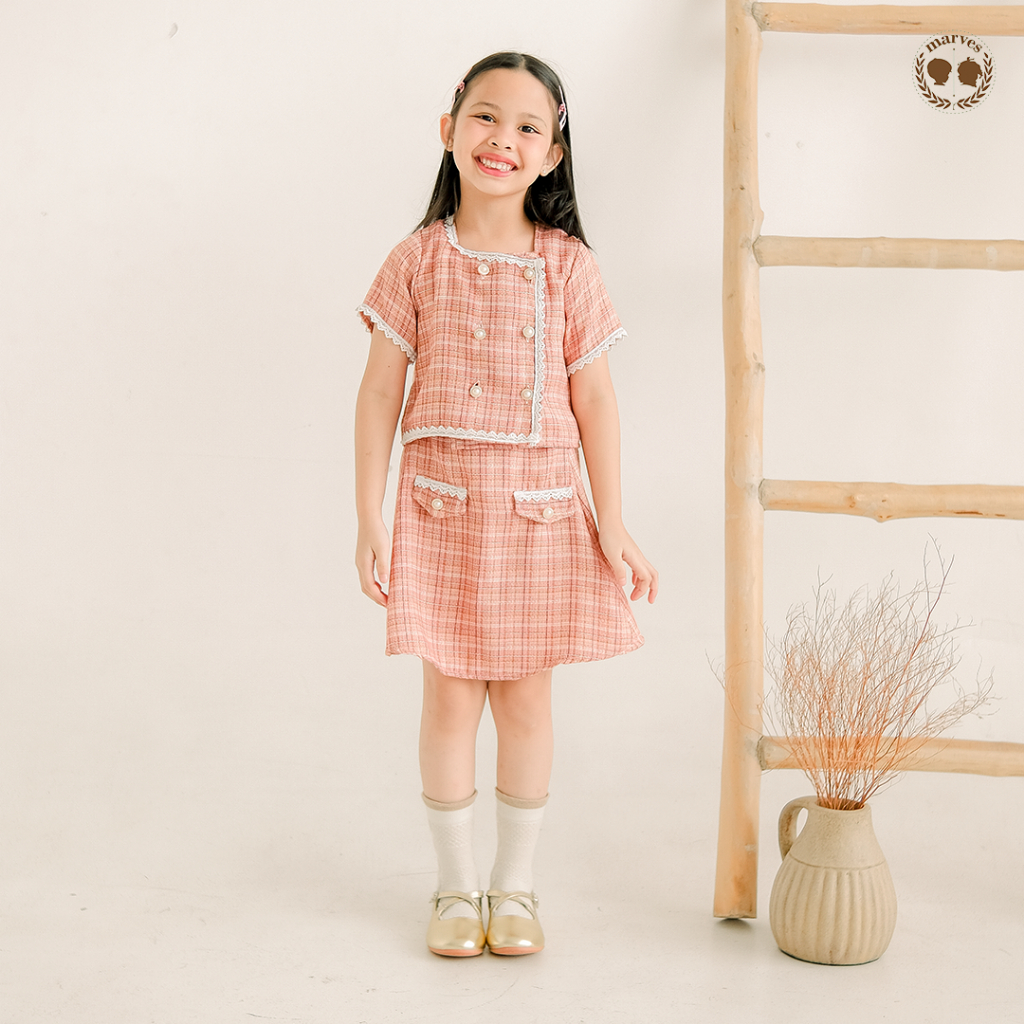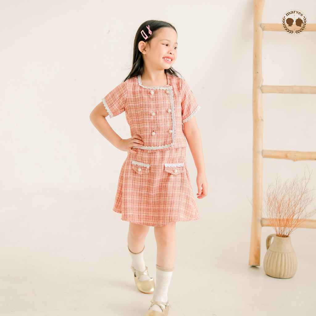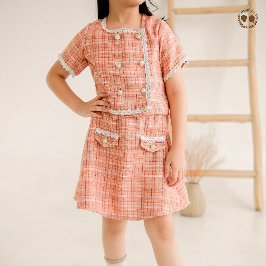 MARVES LEORA SETELAN BAJU ROK ANAK PEREMPUAN KOREAN STYLE BAHAN TWEED USIA 2 HINGGA 14 TAHUN