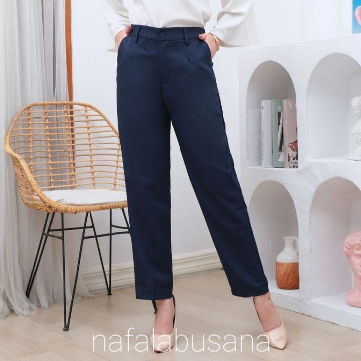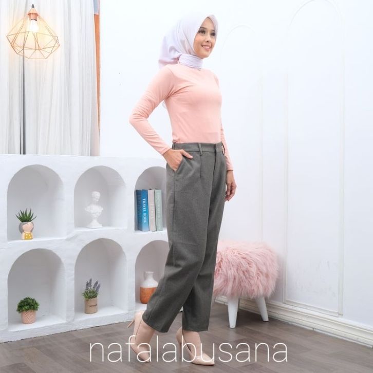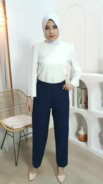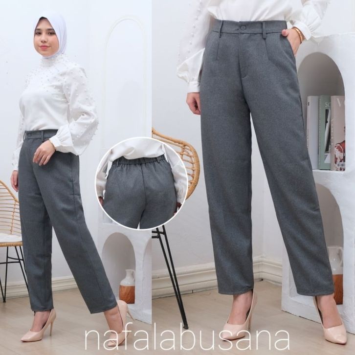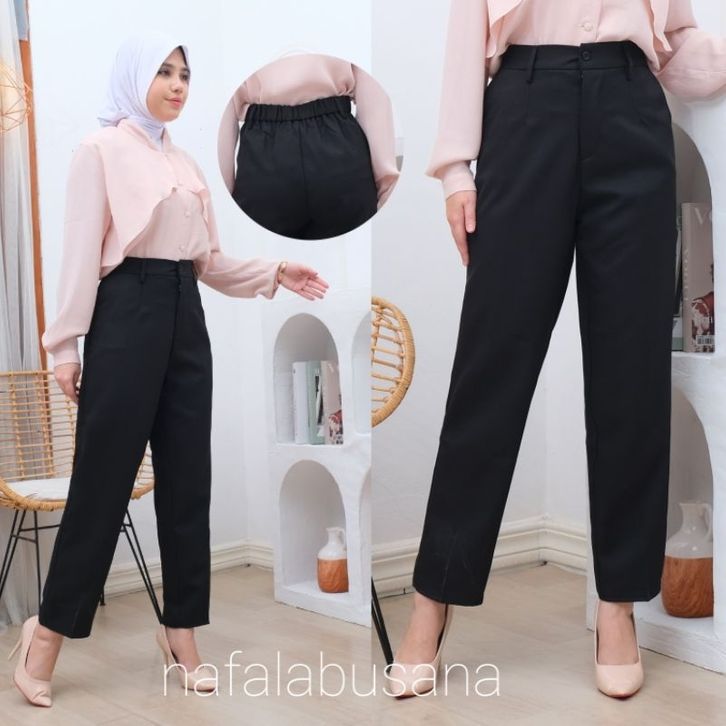 Celana Kerja Wanita Highwaist Pinggang Karet Belakang Bahan Dasar Kain Kantor Formal